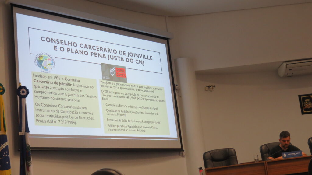 O “Pena Justa”, plano do Conselho Nacional de Justiça para modificar as prisões brasileiras, com o apoio da União e da sociedade civil foi pautado hoje (17) na Comissão de Direitos Humanos e Cidadania da Câmara de Vereadores de Joinville, pelo CCJ.